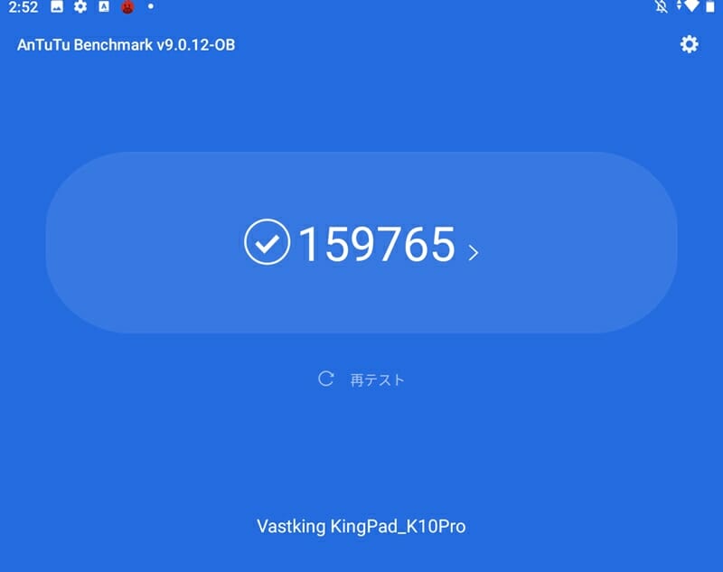 本製品『VASTKING KingPad K10 Pro』について、AnTuTuベンチマークテストを実施した結果は以下の通り。