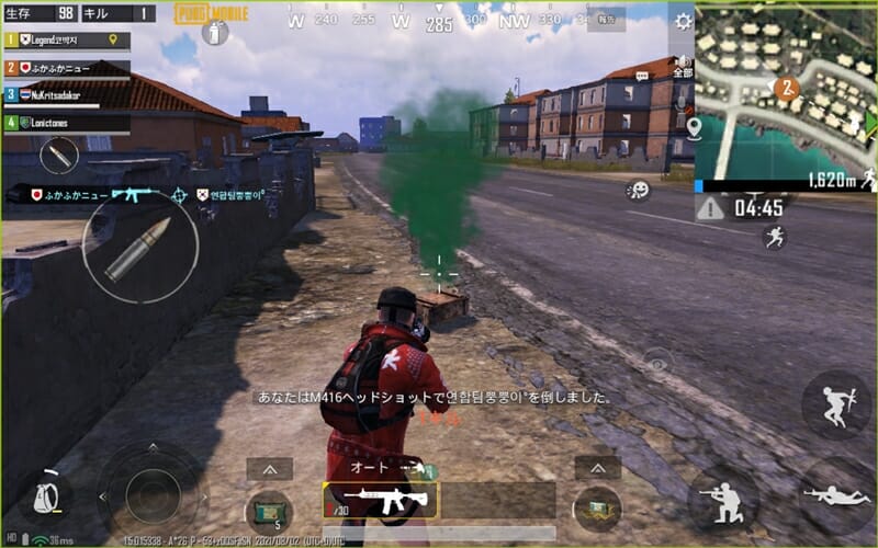 結果として、PUBGの場合と同様に、全体的にスムーズな操作・アクションが可能であった。