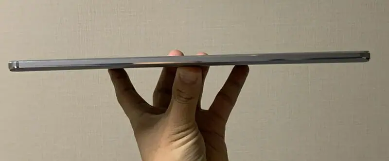 ▼厚みは約8ミリと非常に薄い。カバンなどに入れて持ち運んでも支障に感じることはないだろう。