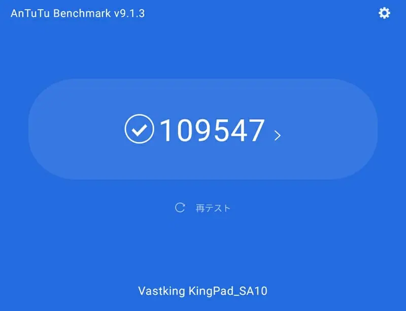 本製品『VASTKING Kingpad SA10』について、AnTuTuベンチマークテストを実施した結果は以下の通り。