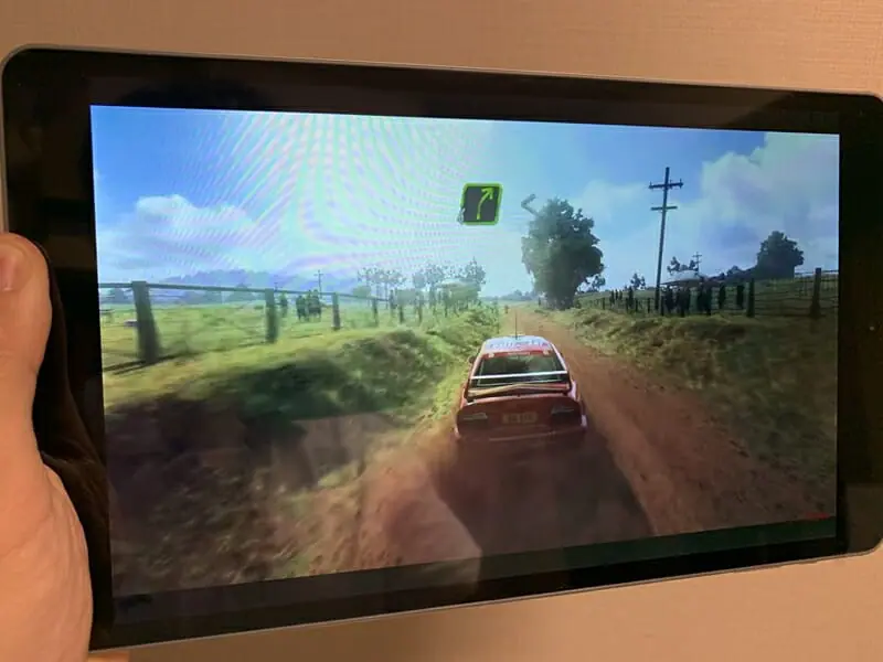 ▼ディスプレイを直撮りした様子。色合いは鮮やかであり、これといった遅延も見られない。