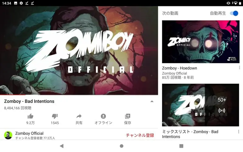 YouTubeにて音楽を再生。