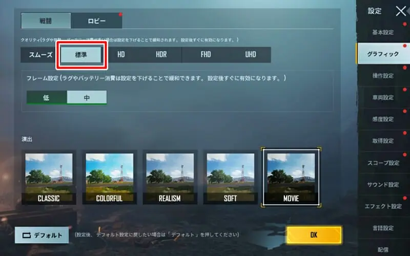 まずグラフィッククオリティに関しては『標準』までを選択することが出来た。