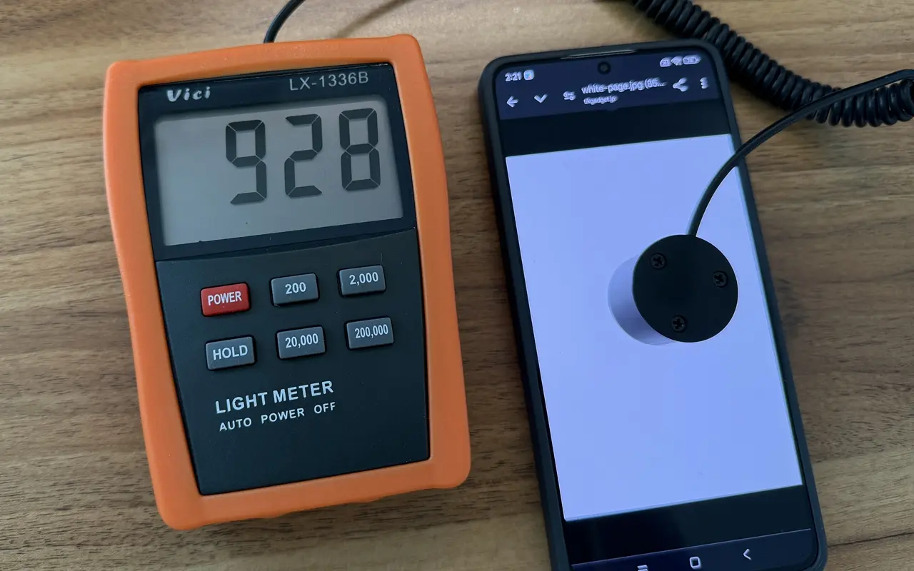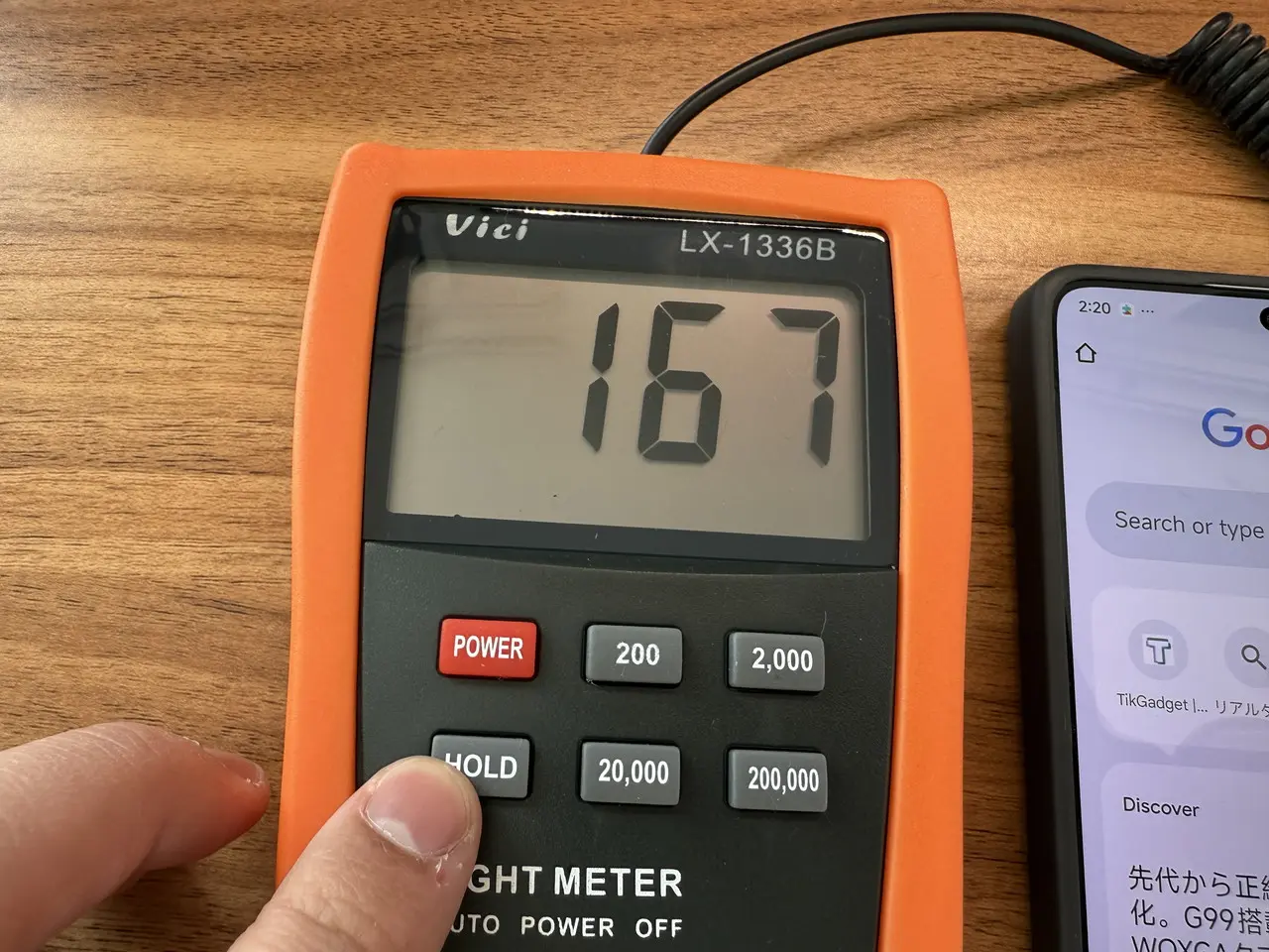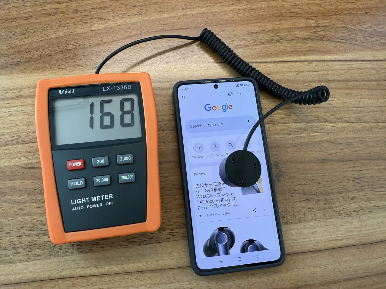 実際にVici LX1336Bを使って、スマホのディスプレイ輝度を測定してみた。