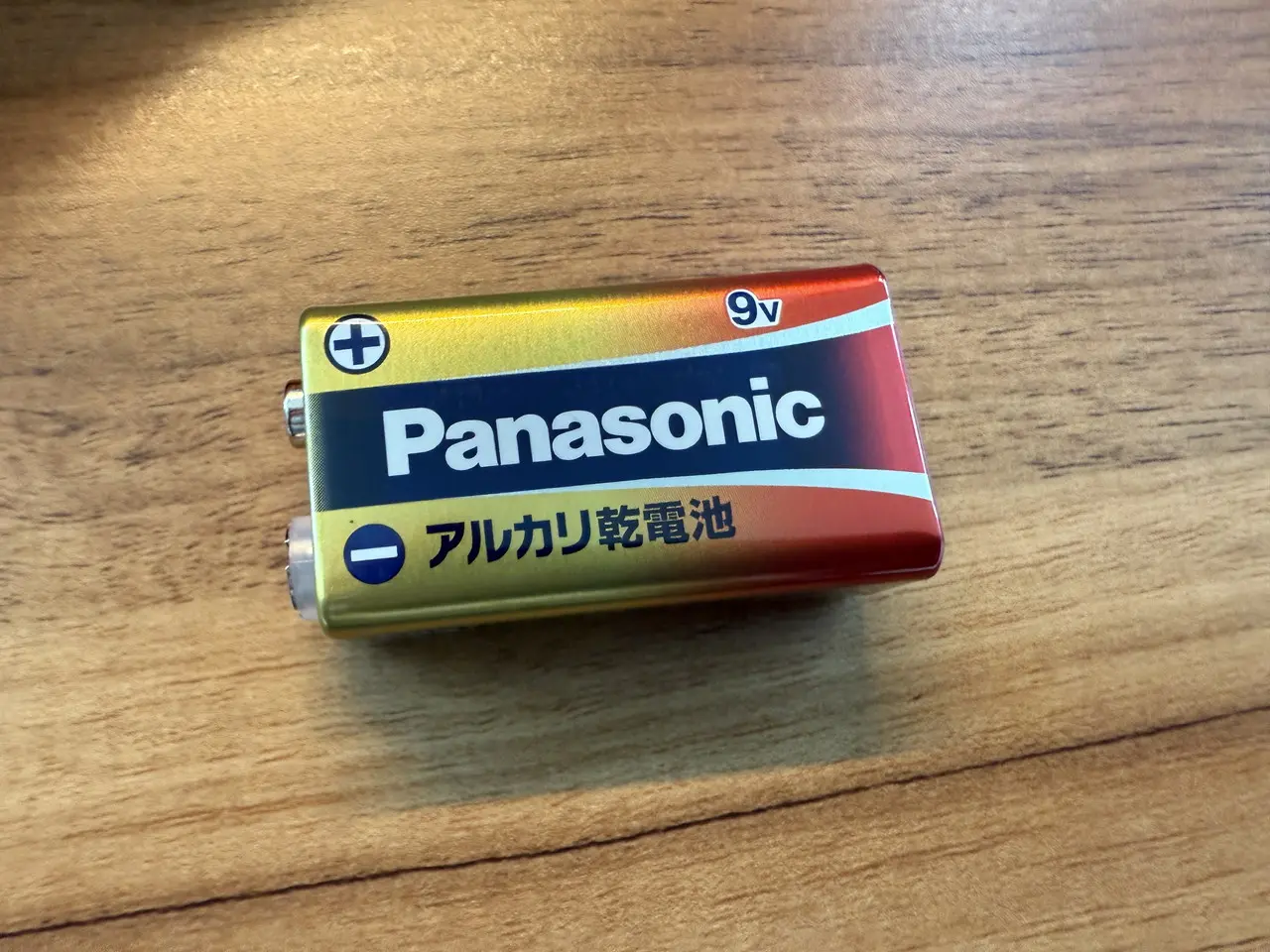 ▼9V 乾電池。コンビニで売っていることは少ないが、ドンキやイオン、家電量販店などで購入できる。