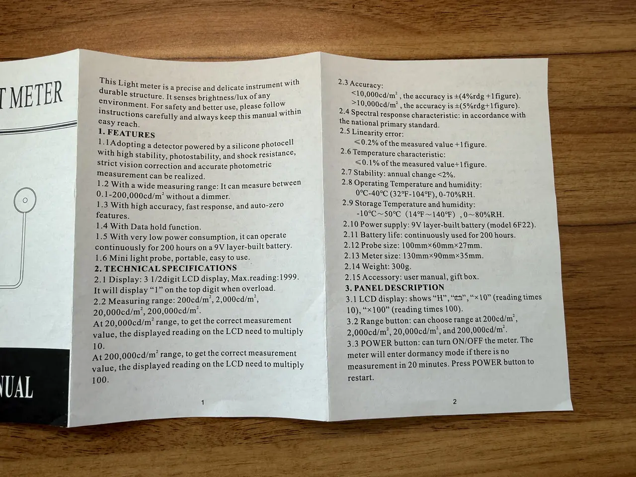 計測の精度は<10,000 cd/㎡ の場合で±(4%rdg + 1figure)、10,000 cd/㎡ の場合で±(5%rdg + 1figure)となっている。