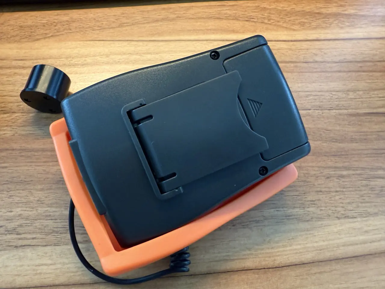 Vici LX1336Bを覆っているオレンジ色のカバーを外すと、下部に電池投入部が用意されている。