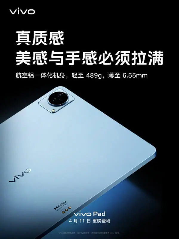 vivo Padは大画面スマホvivo X Note、折りたたみ式スマホvivo X Foldとともに、2022年4月11日 20:30より中国にて発表される予定です。