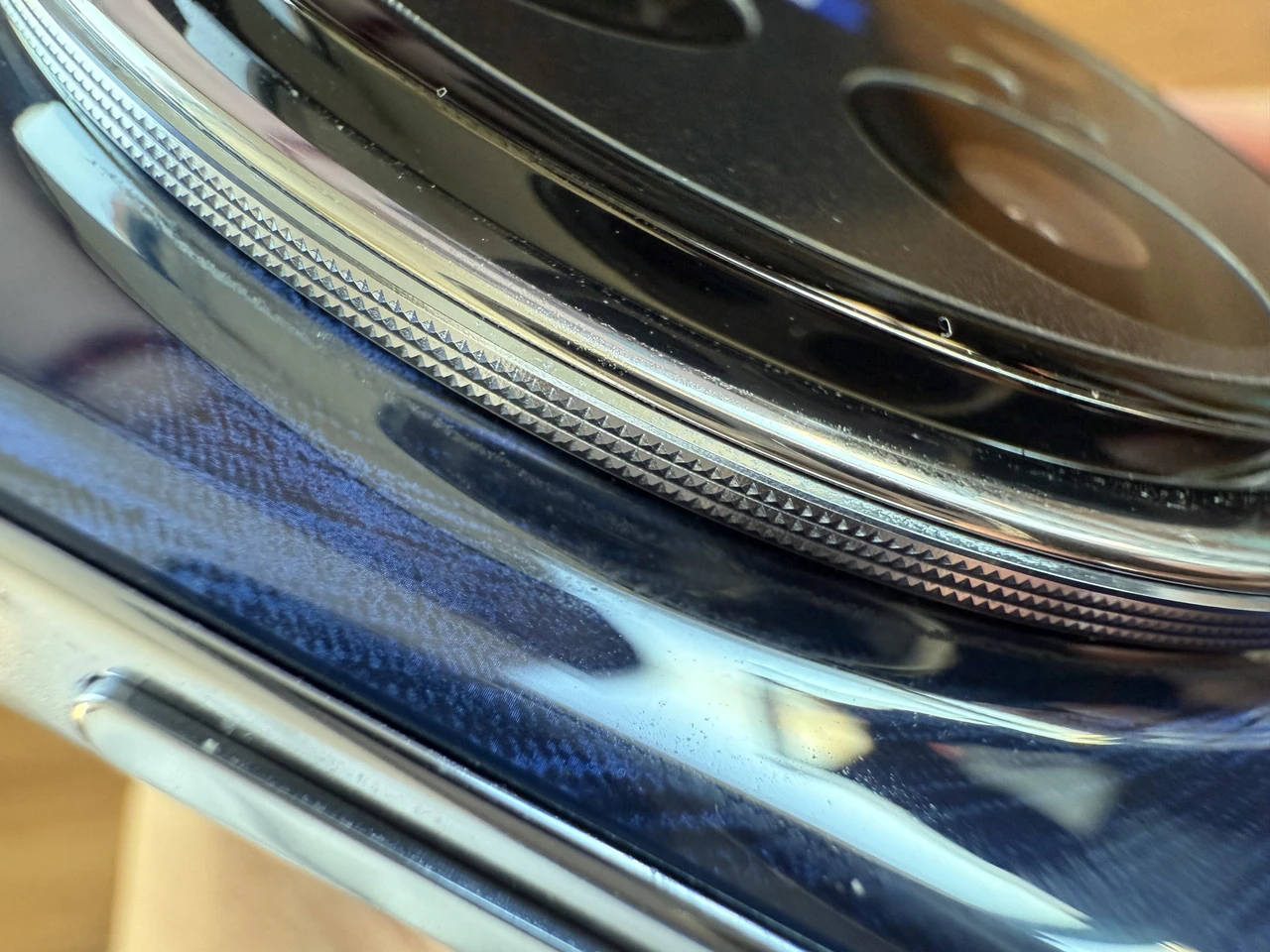 ▼リアカメラの縁にはひし形の彫り込みがあり、細部までデザインが凝っている。