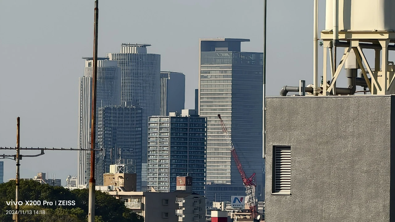 しかし『VIVO X200 Pro』は最大100倍の望遠撮影に対応しており、撮影地点から約6km先にあるビル群の輪郭までを捉えることができていた。