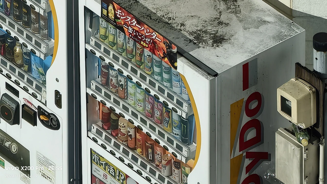 前モデル「vivo X100 Pro」と今回の「vivo X200 Pro」で100m先の自販機を撮影した写真の比較を以下に載せる。vivo X200 Proの望遠撮影性能の向上具合が伺えると思う。