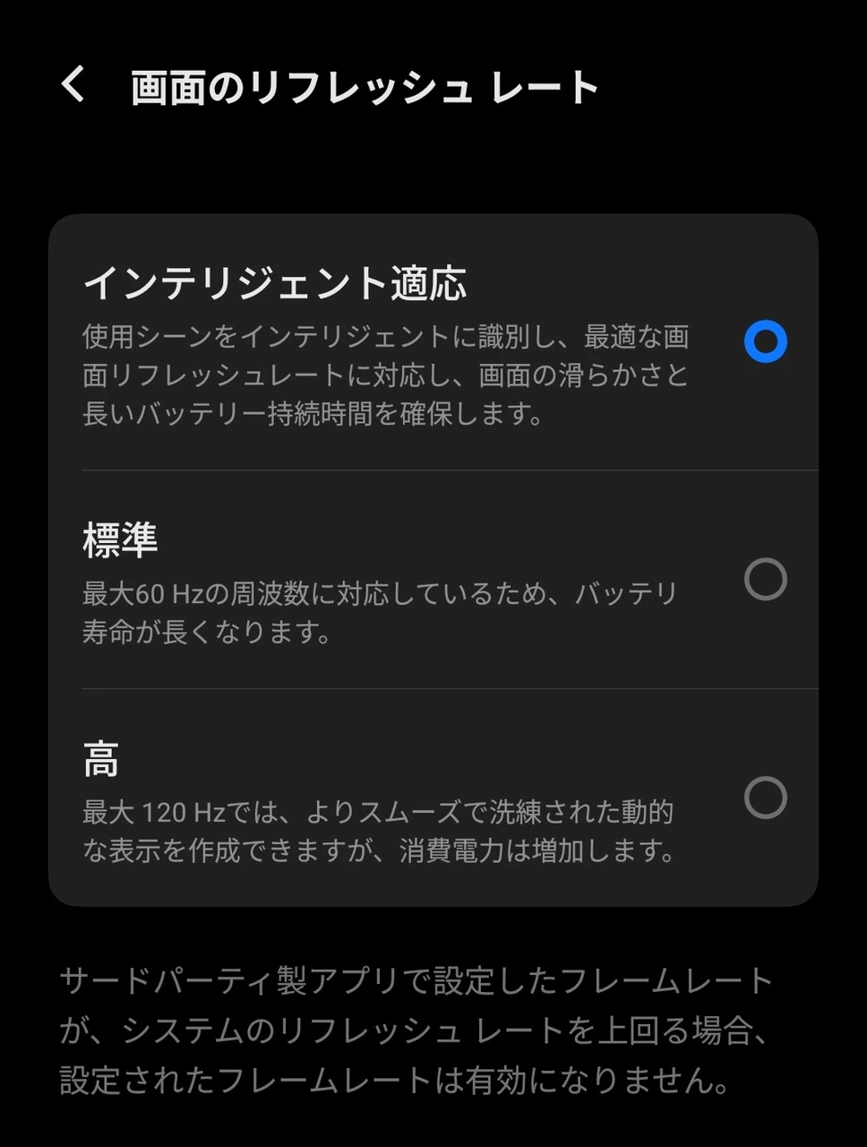 ▼リフレッシュレートは設定アプリより切り替えることができる。