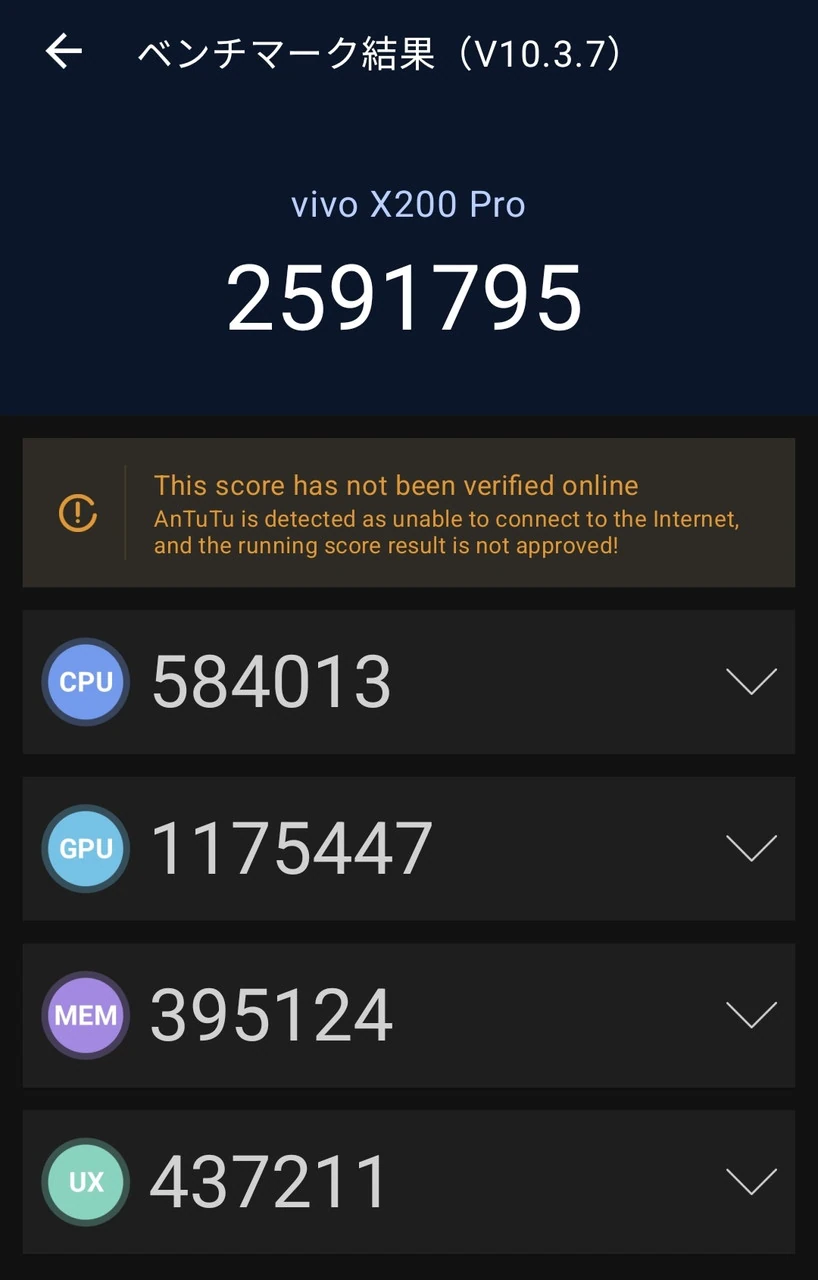 しかし今回のvivo X200 Proでは、vivo X100 Proの場合と同程度の負荷を与えてみたが、気になるレベルの発熱は生じなかった。もちろん、パフォーマンスへの影響もまったく体感できなかった。