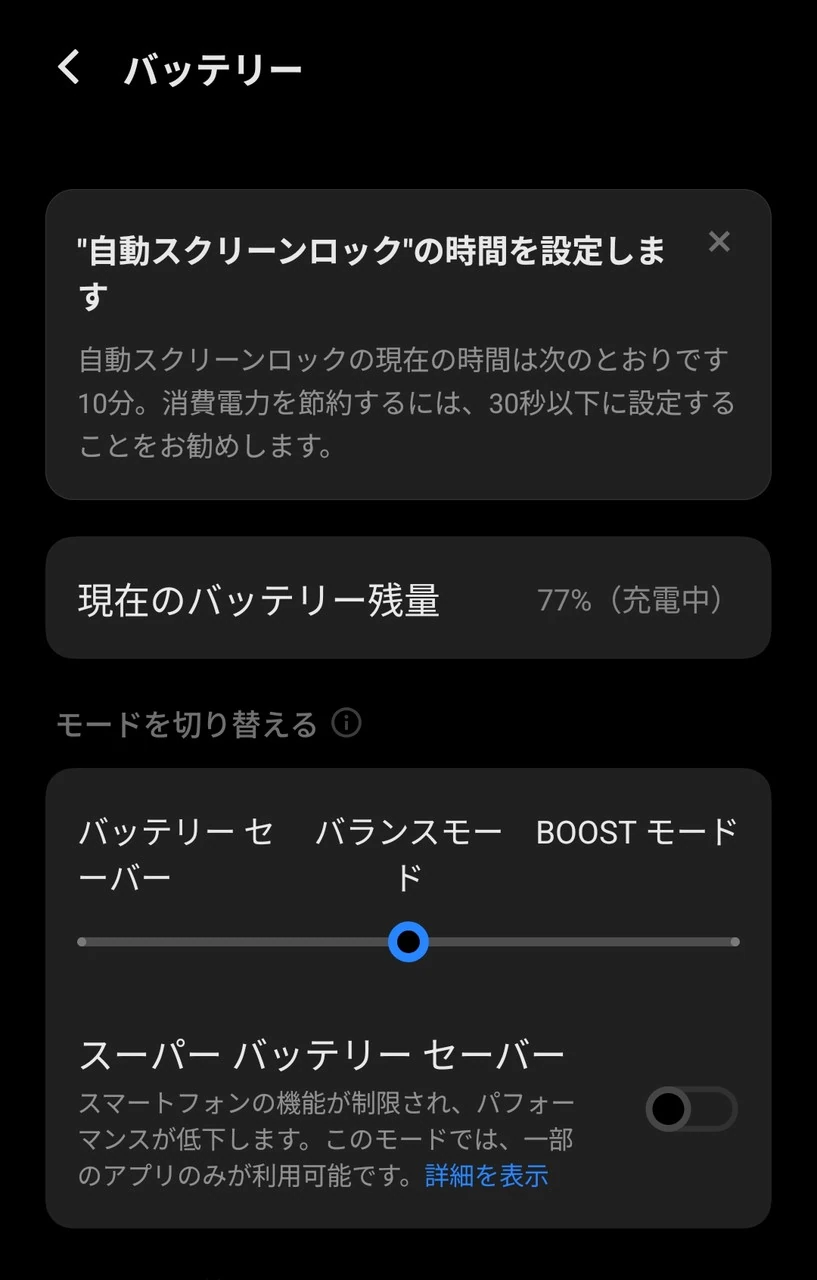 ▼できるだけ長持ちさせたい場合のために、「スーパーバッテリーセーバー」の機能も用意。