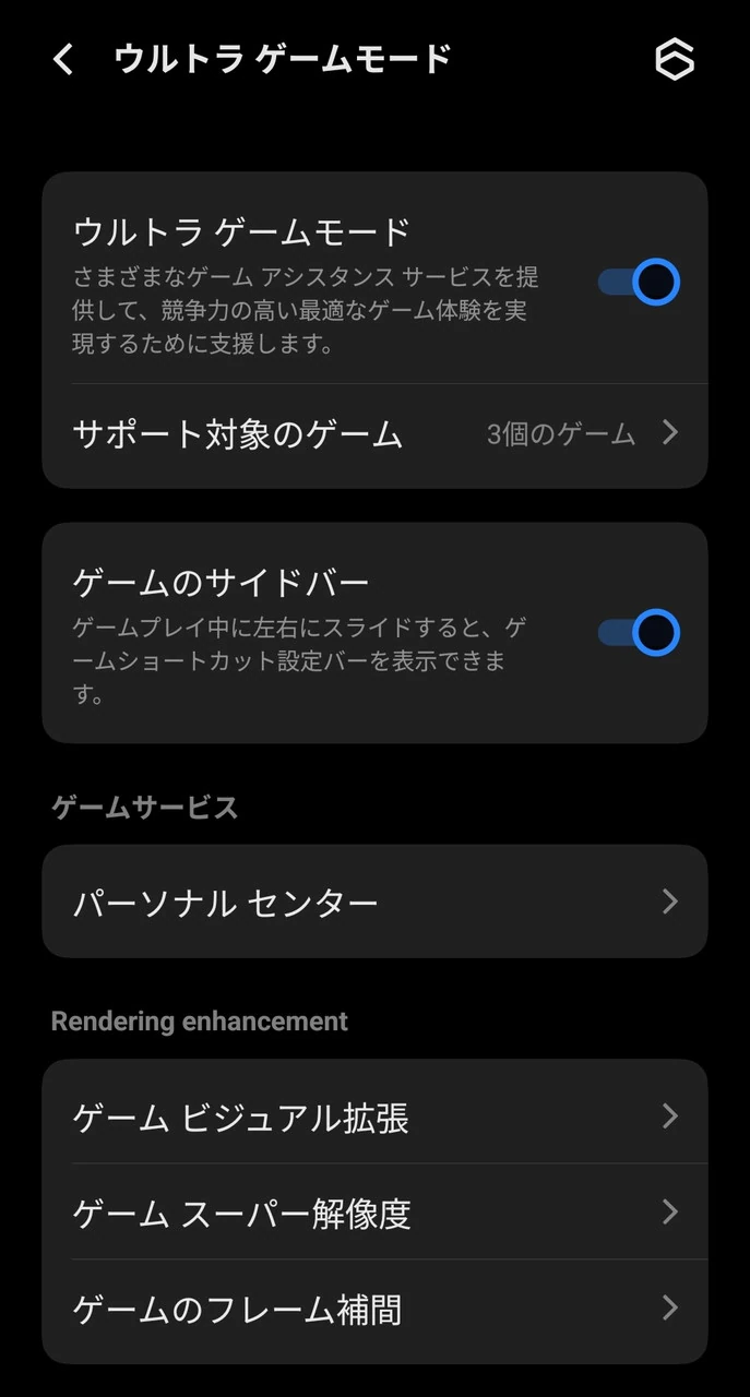 また設定アプリでは、ゲーミングに関するより詳細な調節を行うことが可能だ(ウルトラゲームモード)。
