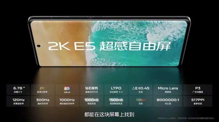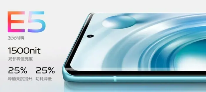 ベースモデルのvivo X80はE5材料のAMOLEDディスプレイを搭載しており、最大1500nitです。