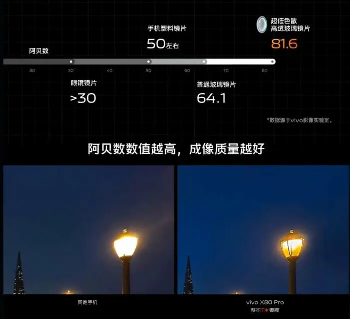 vivo X80シリーズはX70シリーズと同様、ZEISSとのコラボを継続しており、高品質なT*コーティングによりフレアやゴーストを軽減できます。