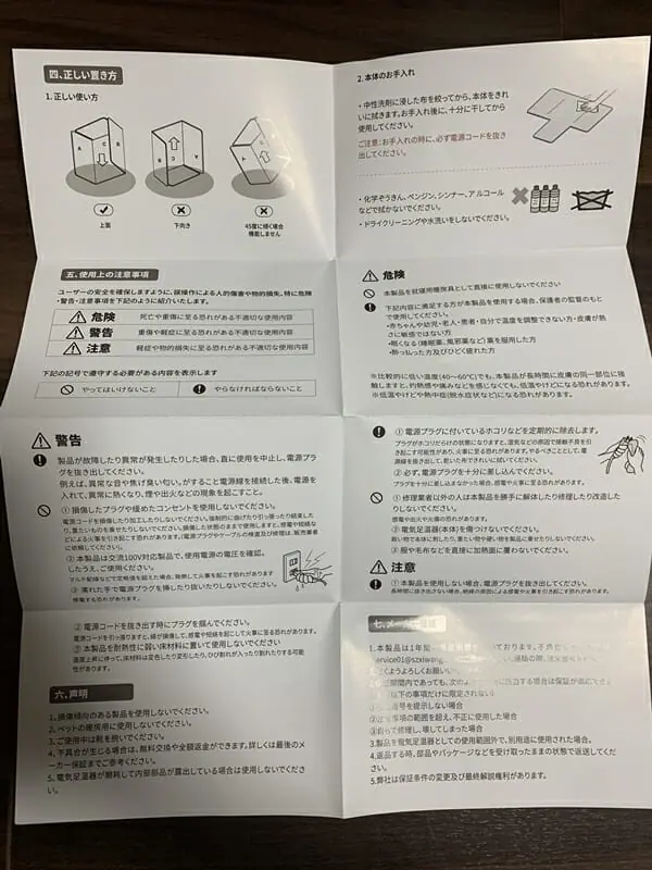 以上の手順で足元パネルヒーターの利用が可能となる。