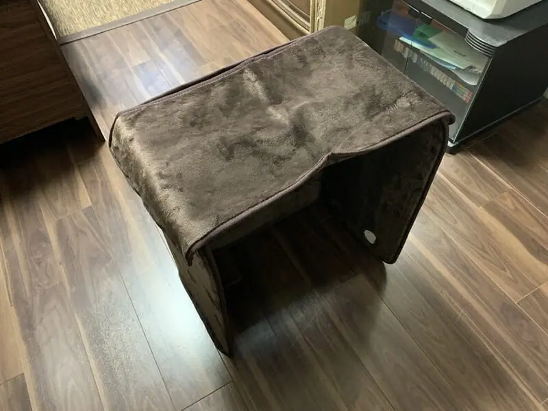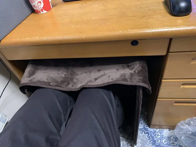 ▼組み立てた状態でも非常にコンパクトなため、下画像のように、デスク下にパネルヒーターごと挿し入れて利用することも可能だ。