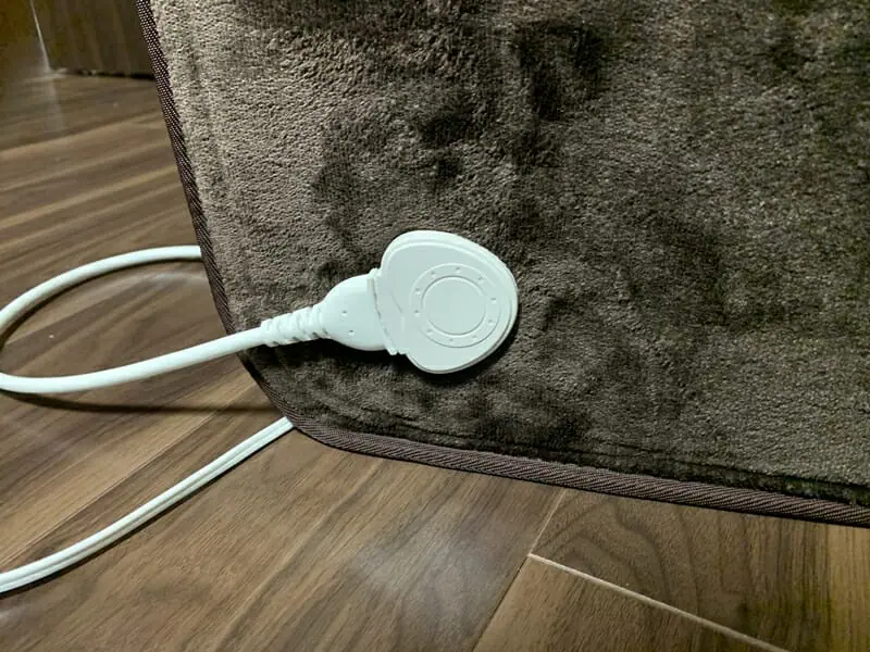 続いて、パネルヒーター外側下部のポートに電源コードを接続し、コンセントに繋ぐ。