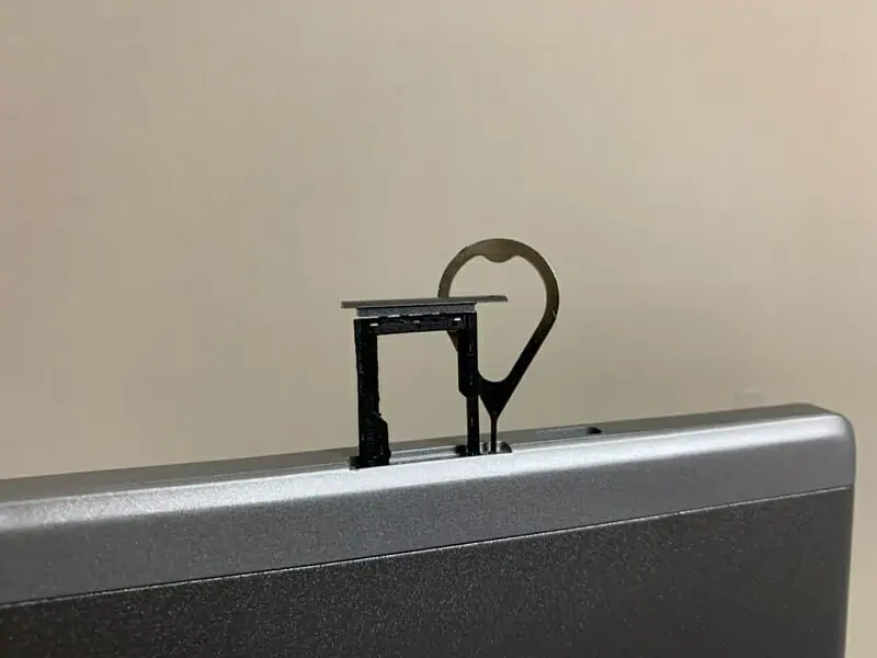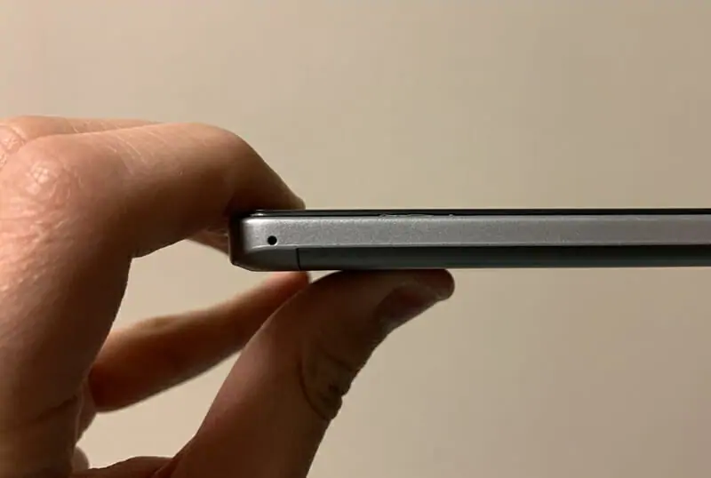 ▼SDカードスロットは、先の細いピンを挿し込むことで開けられる。しかし何故か本製品にはピンが付属していない。別途自分で用意する必要があるのが難点だ。