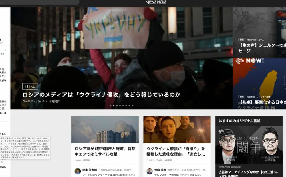 直近ですとロシア・ウクライナ間の紛争問題は日本メディアの記事より圧倒的に量と質が高く緊迫感を持った記事が更新されています。