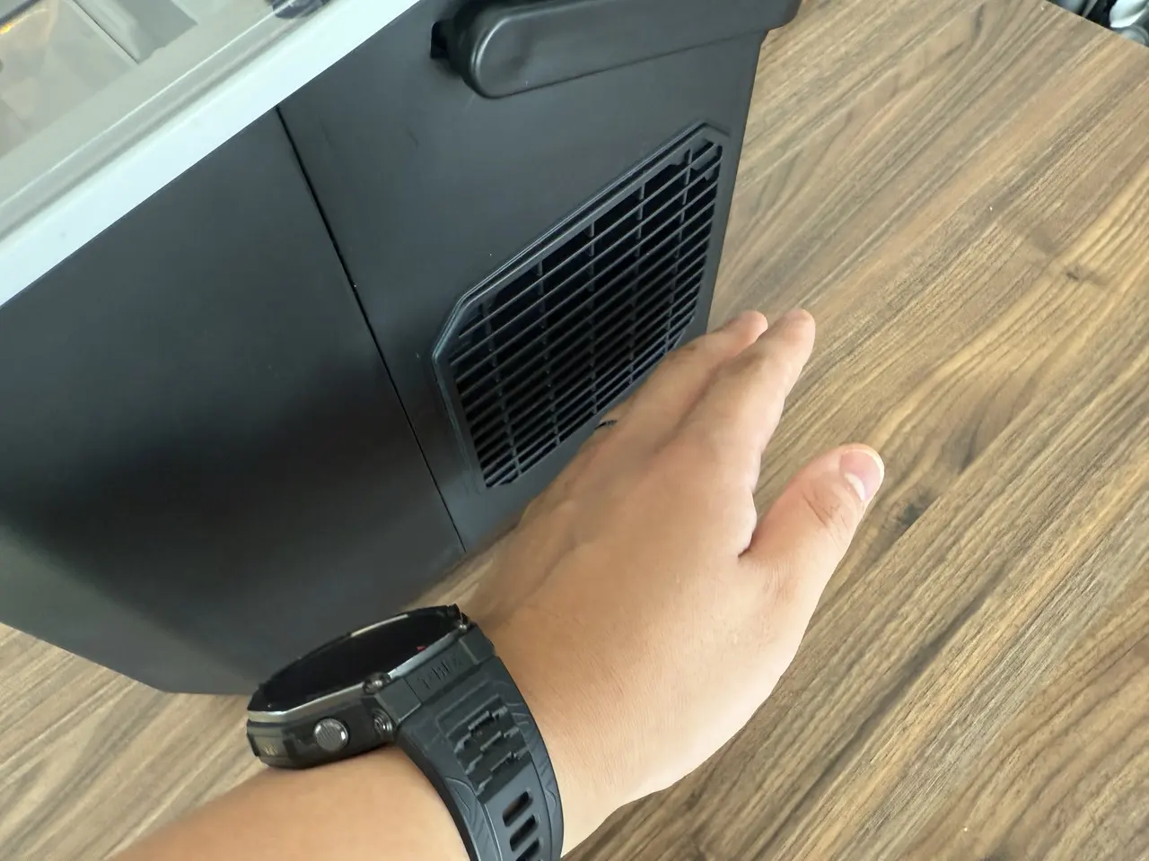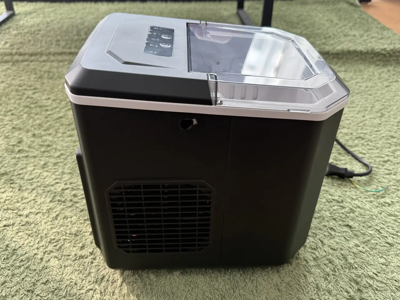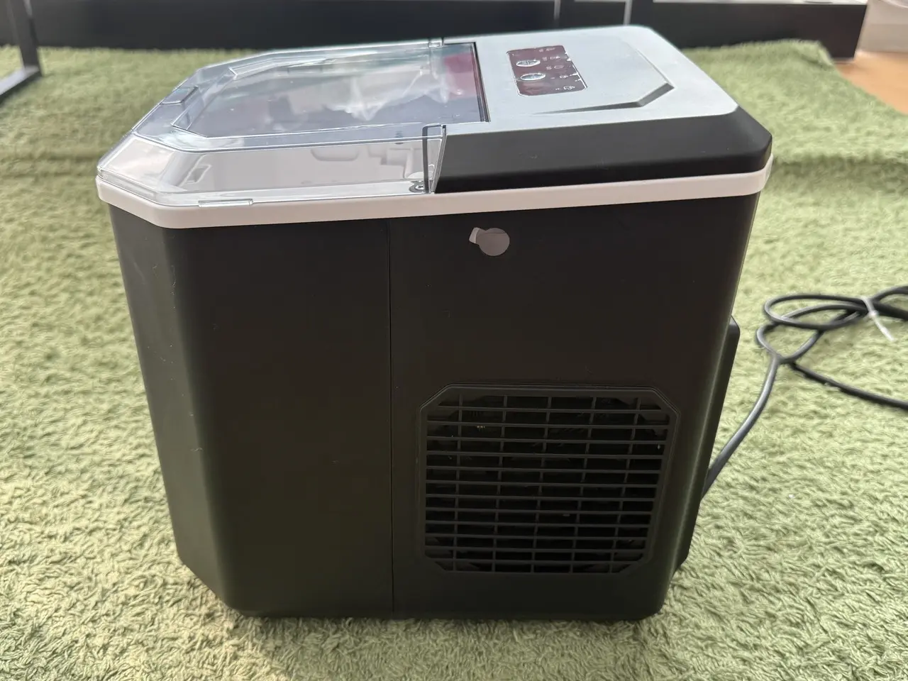 『WIE 家庭用製氷機』は静音設計とされていますが、実際に使ってみると完全に無音というわけではありません。製氷中にはファンが回転する音や排気口からの排気音がしっかりと聞こえます。ただし、甲高いモーター音のような耳障りな騒音ではなく、一定の低い動作音といった印象です。