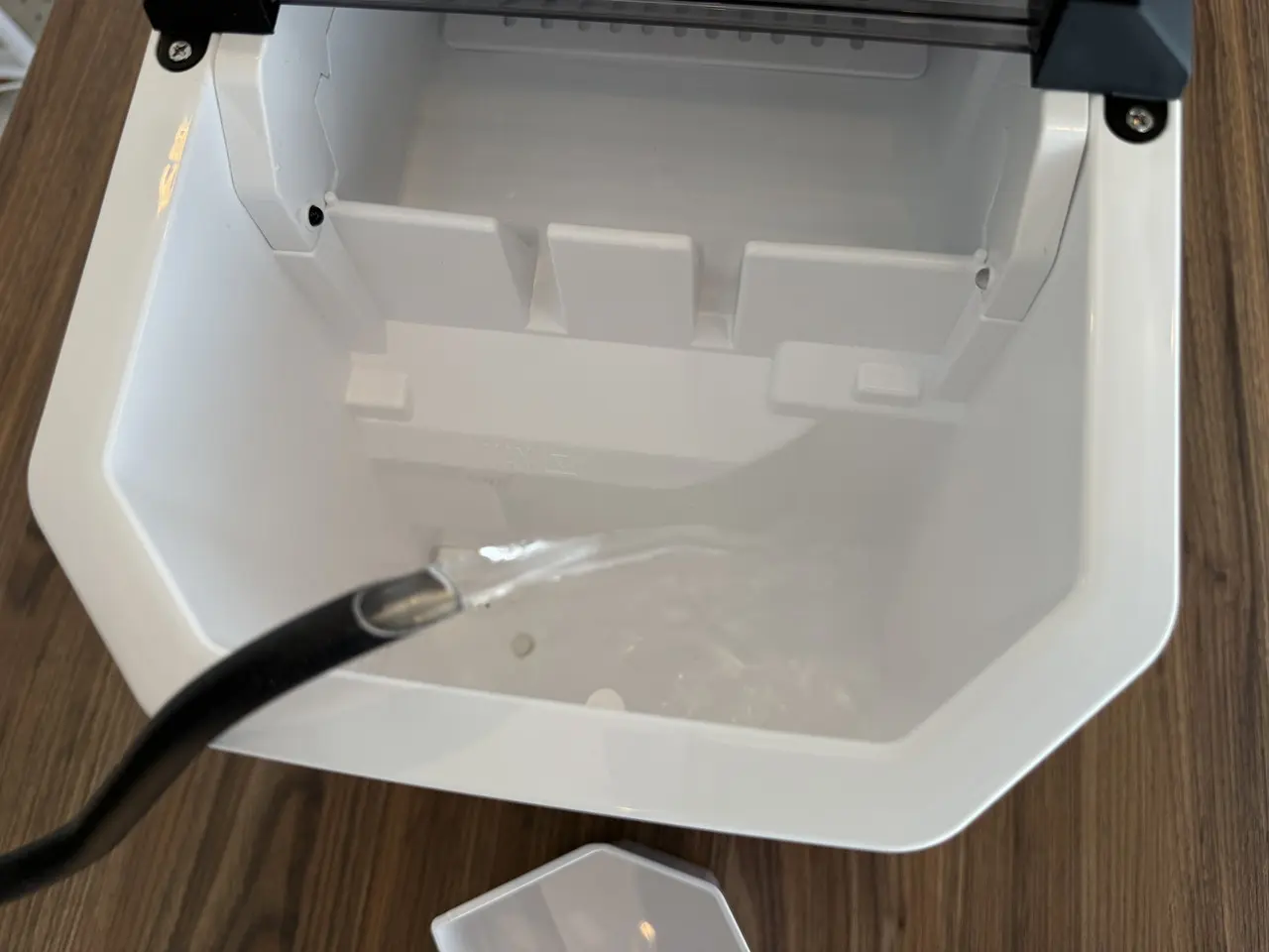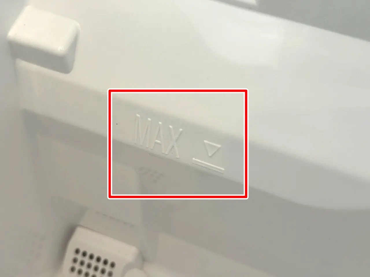 内部の製氷バスケットを取り出し、タンク内のMAX線まで水を注ぎ入れます。