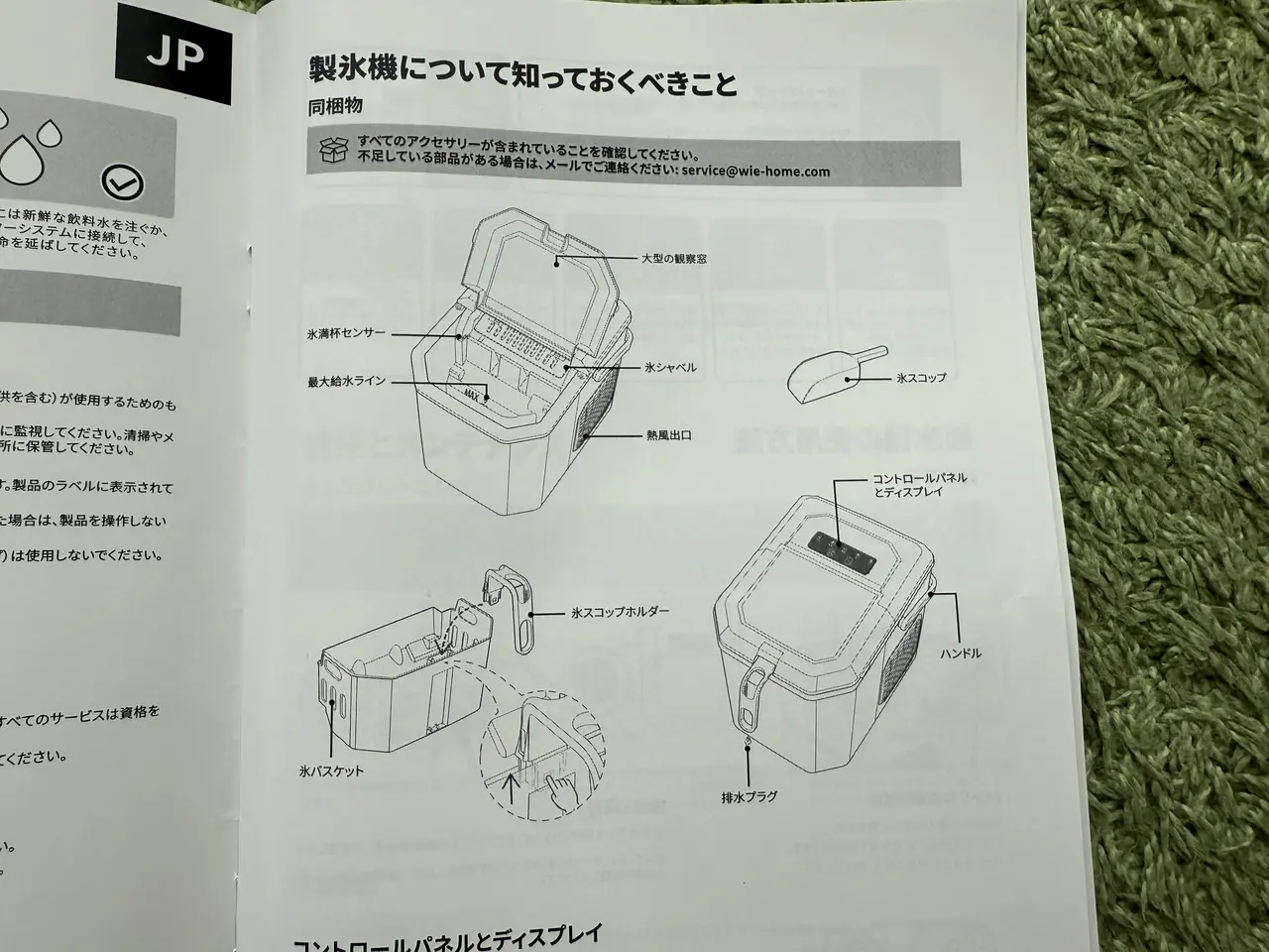 『WIE 家庭用製氷機』のパッケージ付属品一式