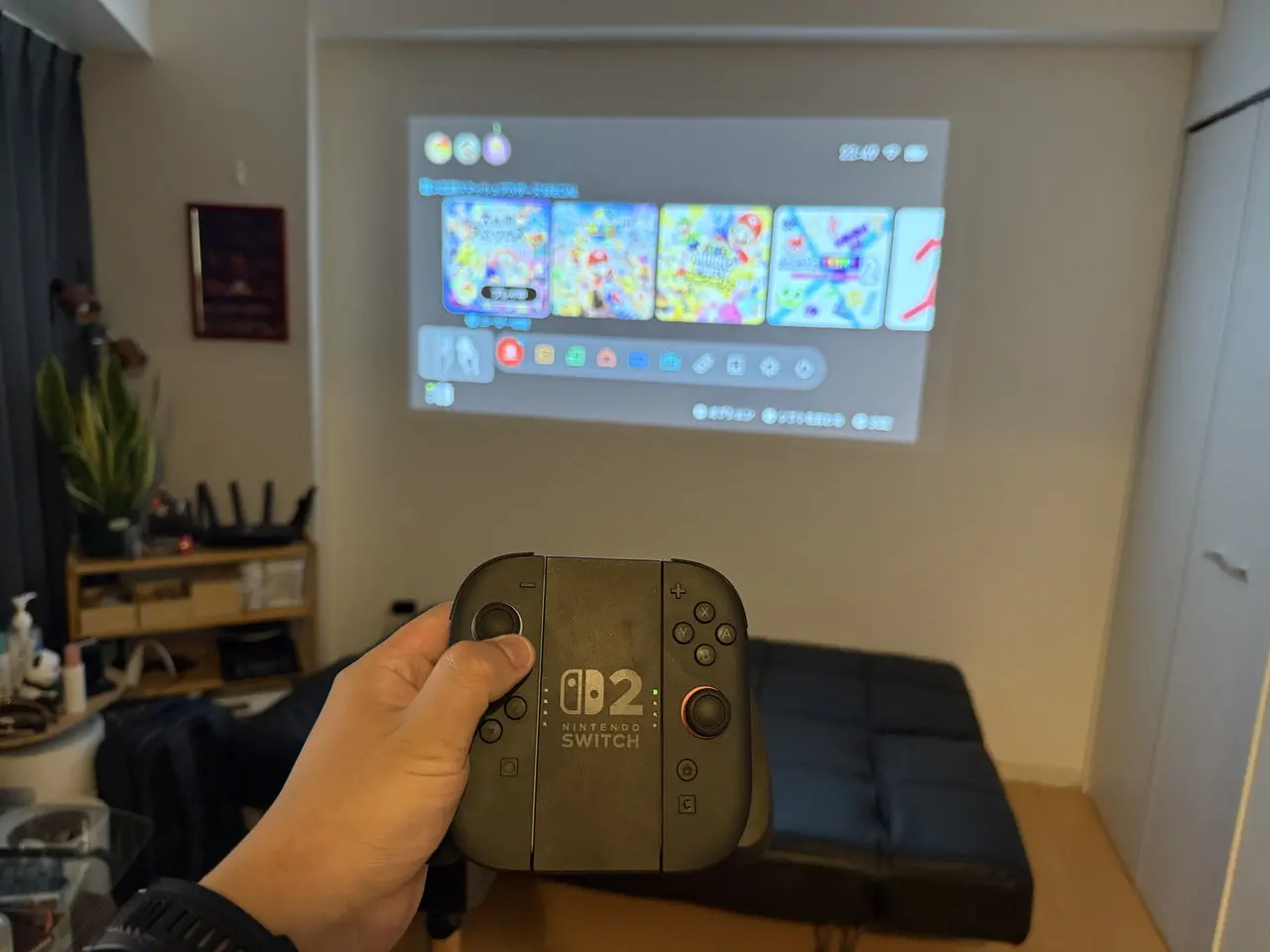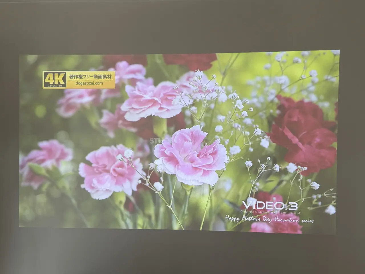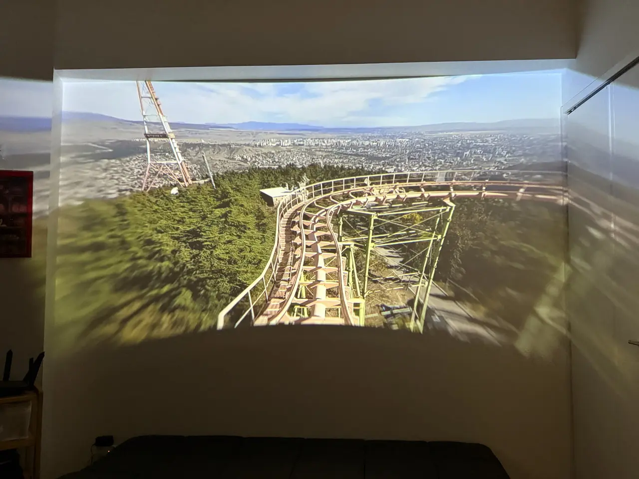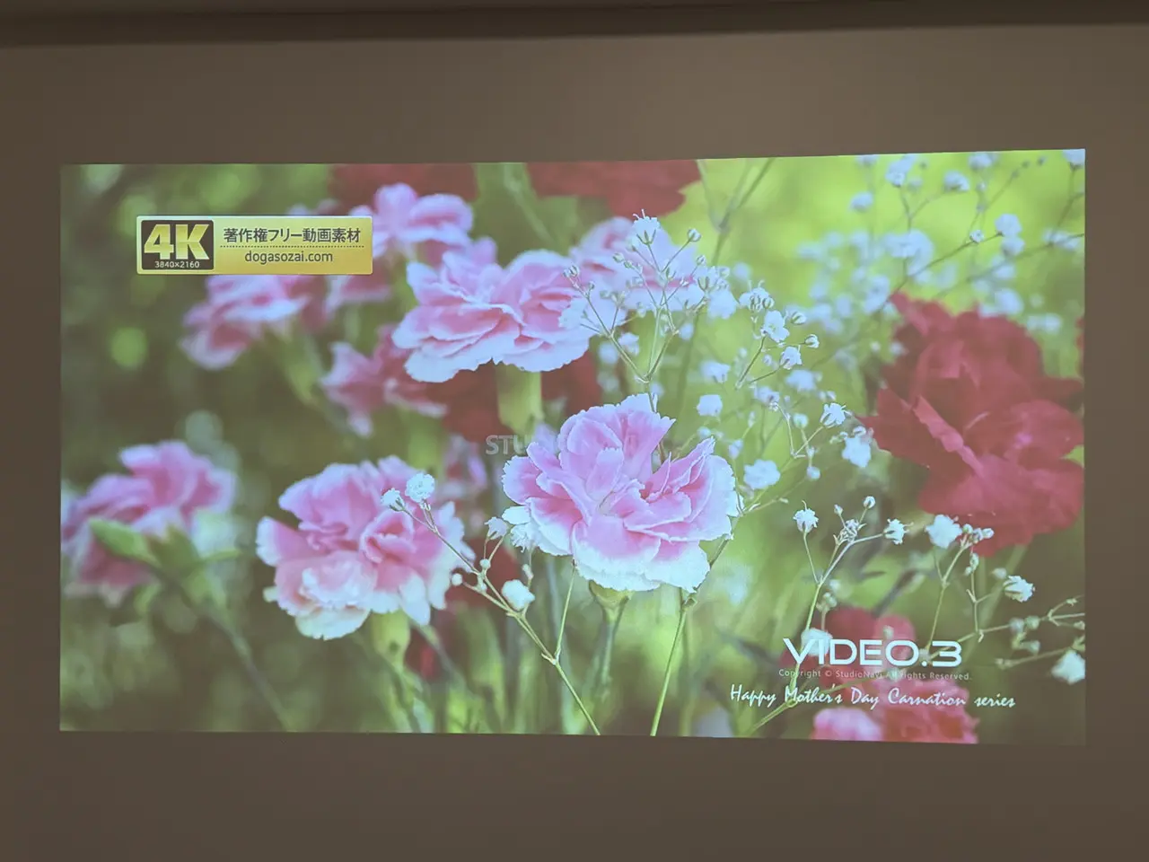 今回のレビューでは、白い壁面から約2mほど離し、約80インチの投影サイズでプロジェクターを利用しました。