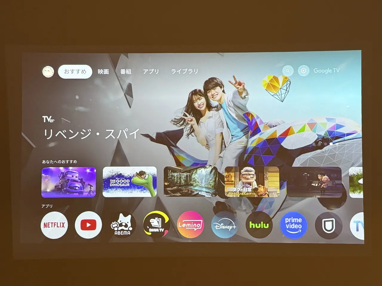 映像は450 ISOルーメンと中間的な明るさながら、色彩の鮮やかさは3モデルで最も優秀で、アニメやスポーツのような色豊かなコンテンツに適しています。加えてGoogle TVを搭載しており、アプリの豊富さや音声操作の快適さも魅力。