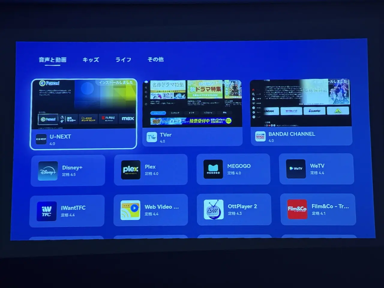 アプリはGoogle Playストア経由で追加可能。主要な動画配信サービスはもちろん、ゲームや学習系アプリを入れて拡張できるため、エンタメ端末としての完成度が高いです。