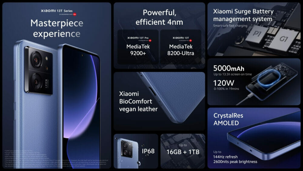 13T ProはMediaTek Dimensity 9200+、LPDDR5Xメモリ、UFS 4.0ストレージを搭載しています。