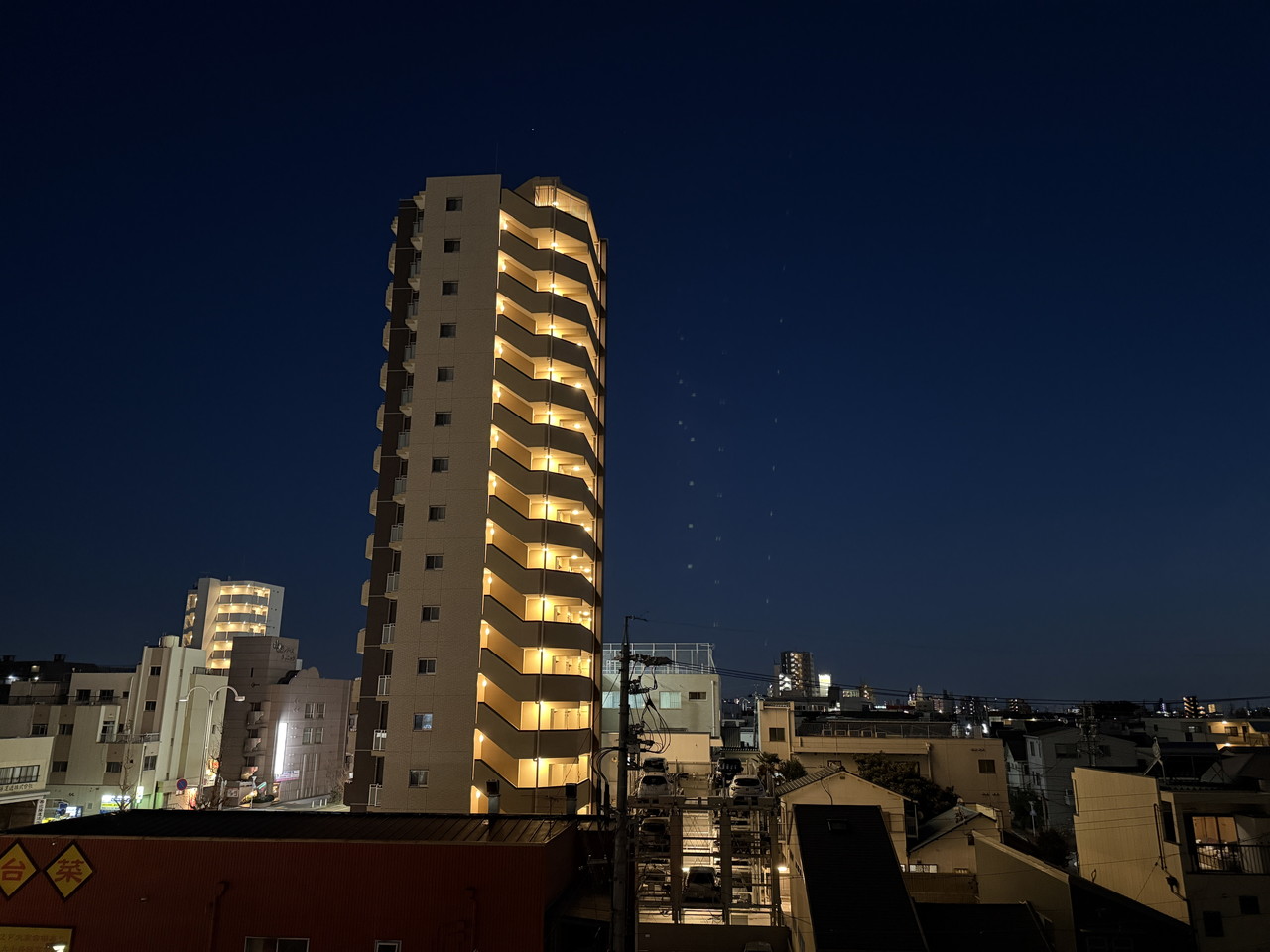 また、夜間の屋外を撮影した際の写真について、「iPhone 16 Pro」で撮影したものと比較してみた。