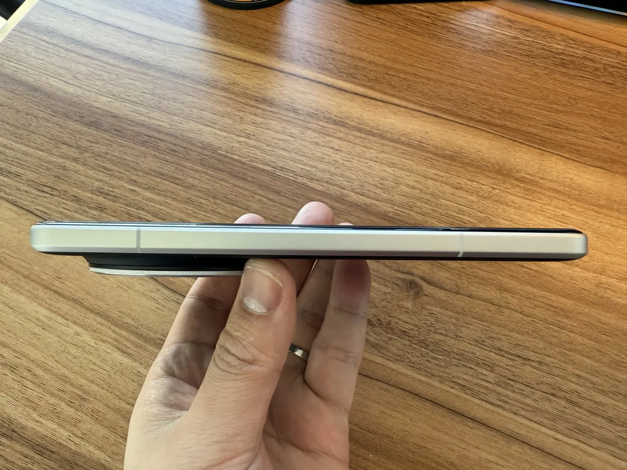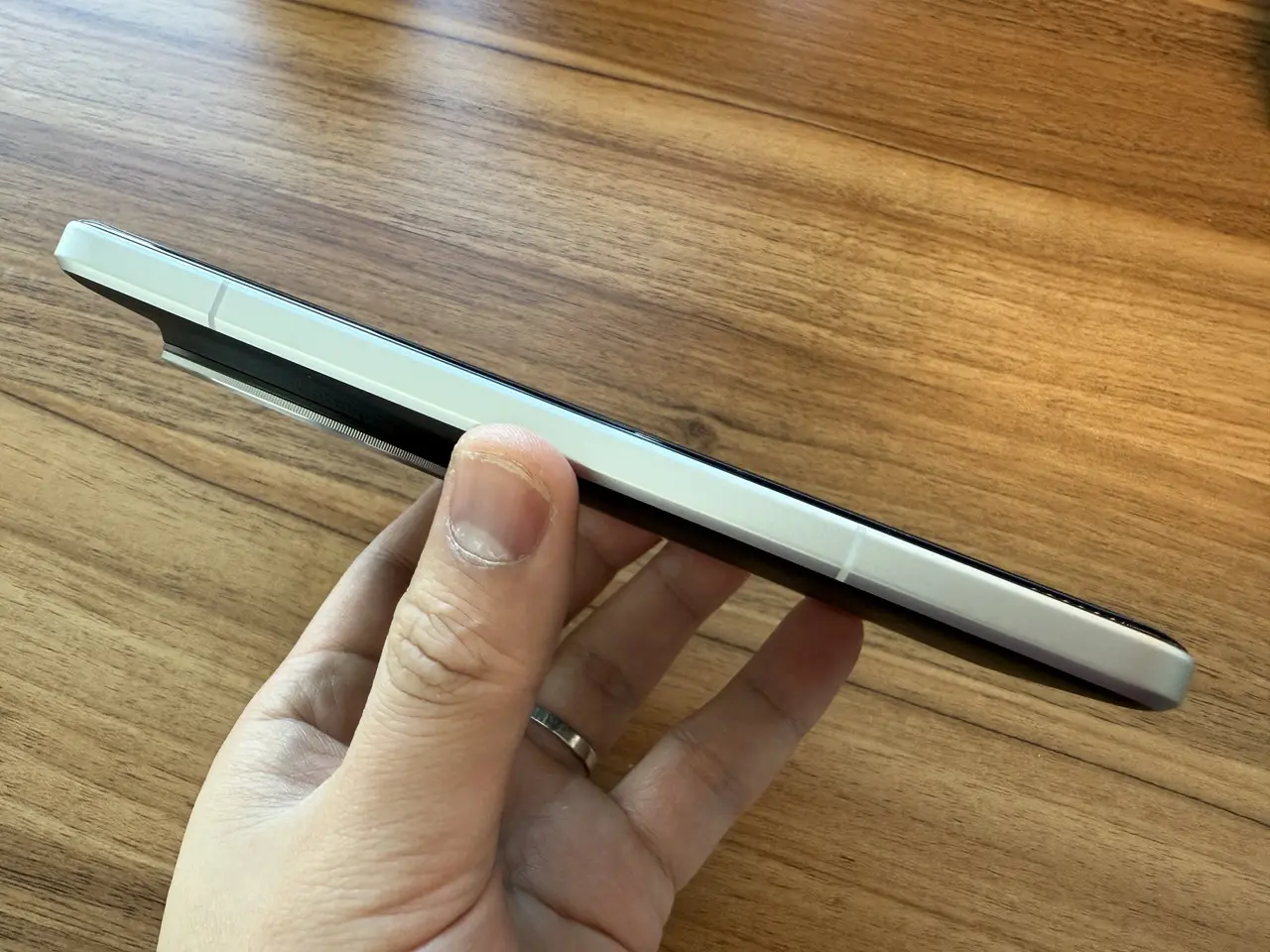 ▼リアカメラ搭載部分が6~7mmほど突出している。