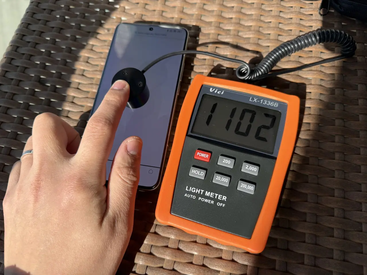 画面輝度は実測で最高1,102nitを記録。日中の明るい屋外でも十分に見やすい明るさを備えている。