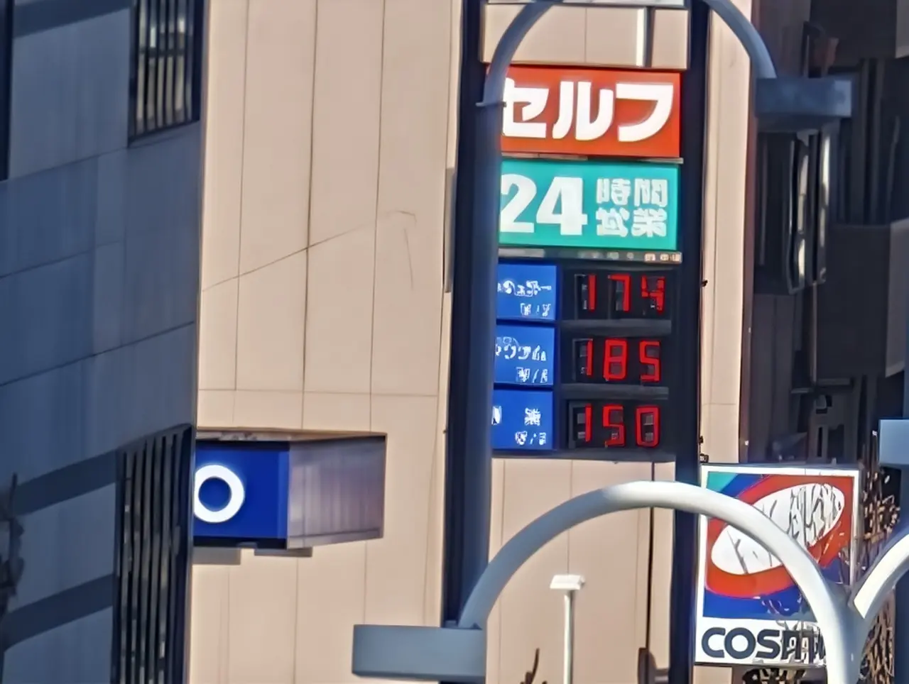 ▼数百メートル先のガソリンスタンドの価格や、道路標識の表記なども明瞭に撮影できた。
