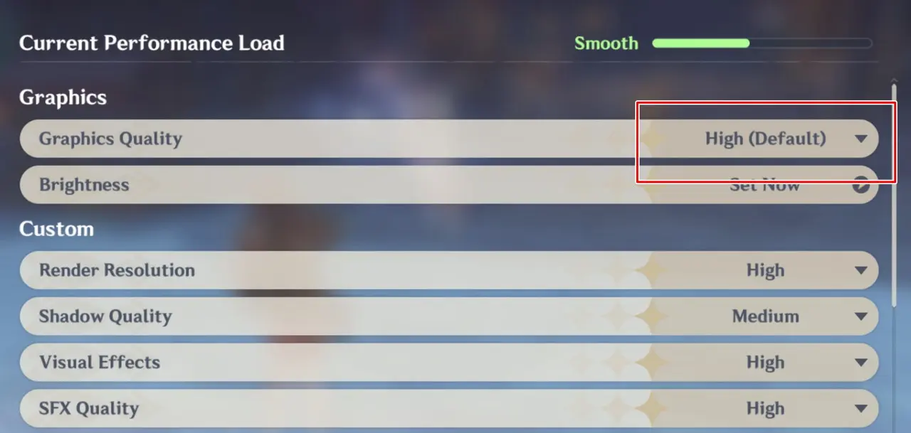▼画質設定はデフォルト状態で "高" に設定されており、デバイス負荷は "スムーズ" の状態。