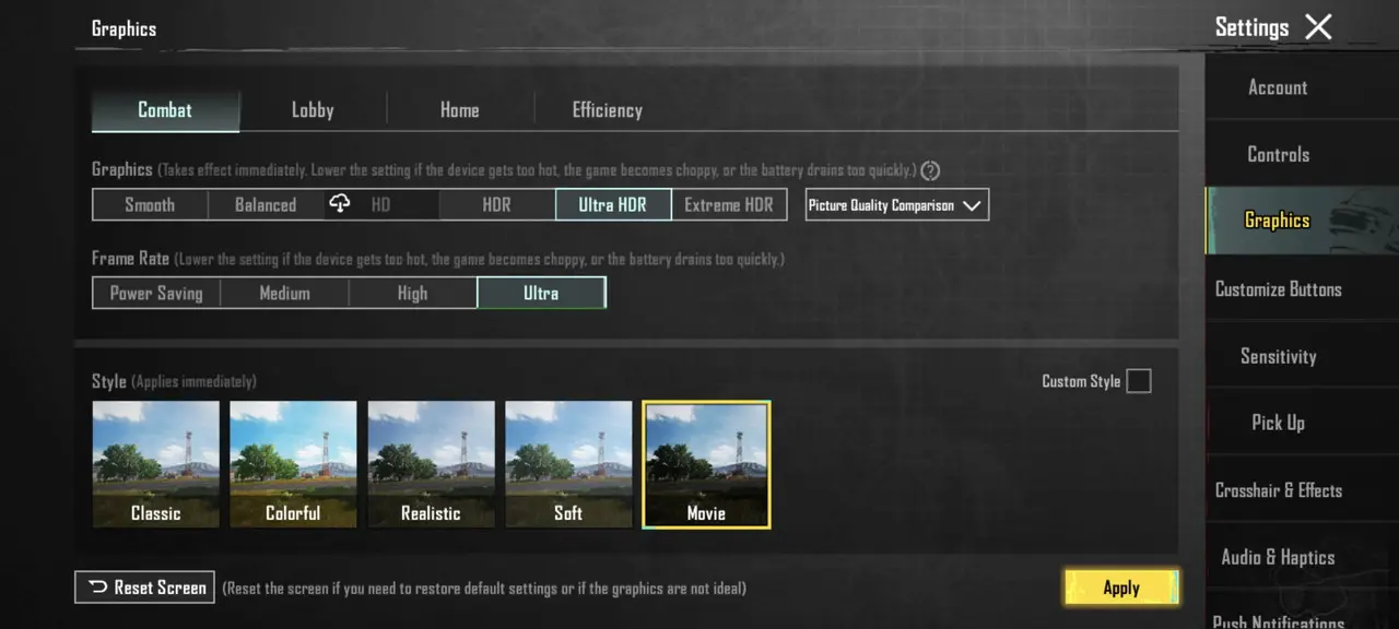 まずグラフィッククオリティに関しては、現時点で最高設定の『ウルトラHDR』を選択できた。
