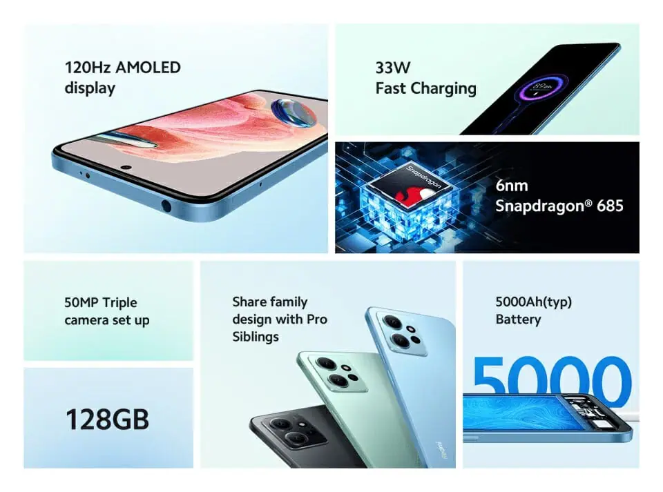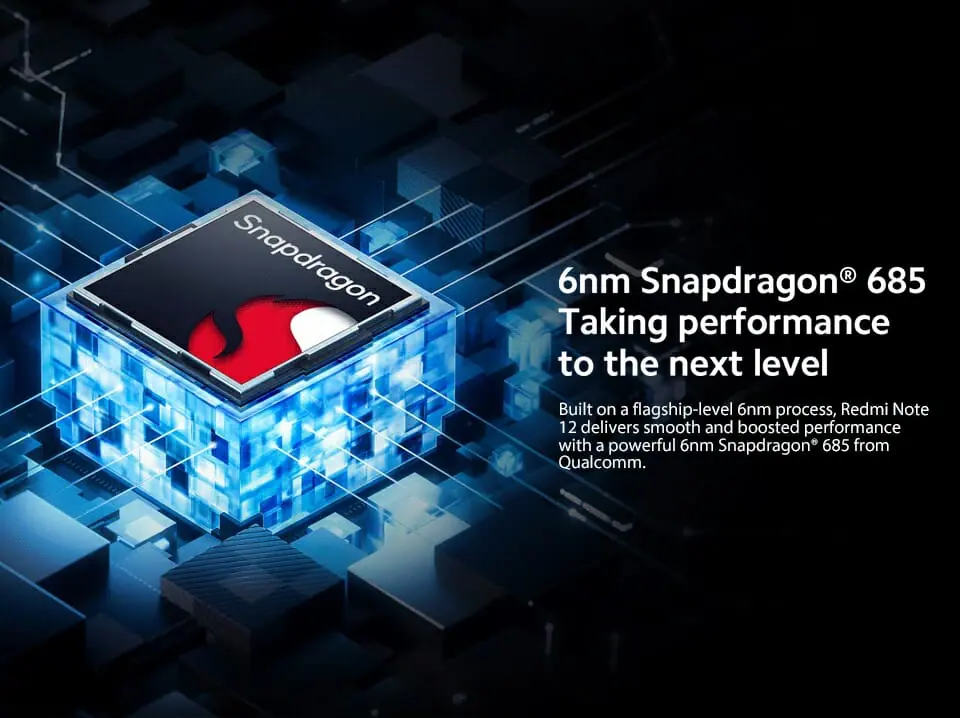 Snapdragon® 685モバイルプラットフォームを搭載したRedmi Note 12は、写真撮影、ゲーム、オーディオ、ストリーミングでシームレスで効率的なマルチタスク体験を提供します。6nmプロセスで構築されたこのプラットフォームは、2.8GHzのCPUの電力効率を向上させます。
