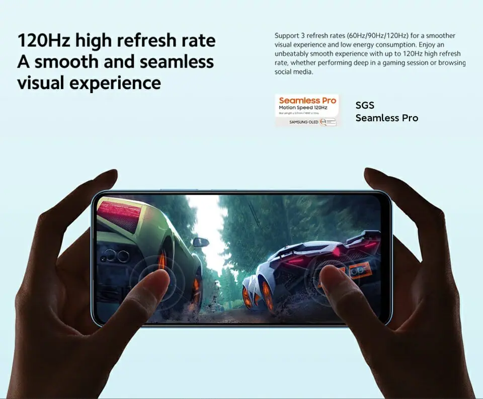 6.67インチOLEDディスプレイは2400×1080 (FHD+)解像度、および最高120Hzの高リフレッシュレートに対応しており、美しく滑らかな映像を楽しむことが出来ます。