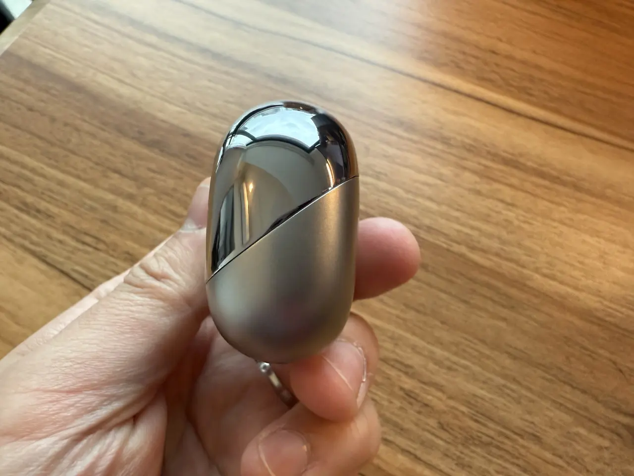 ▼チャージケース本体は手のひらで包み込めるほどコンパクトなサイズ。
