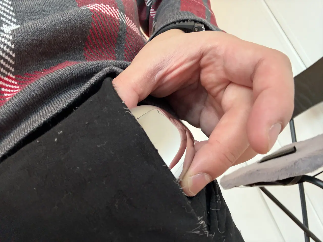 ▼ズボンのポケットにもラクラク収まるサイズだ。