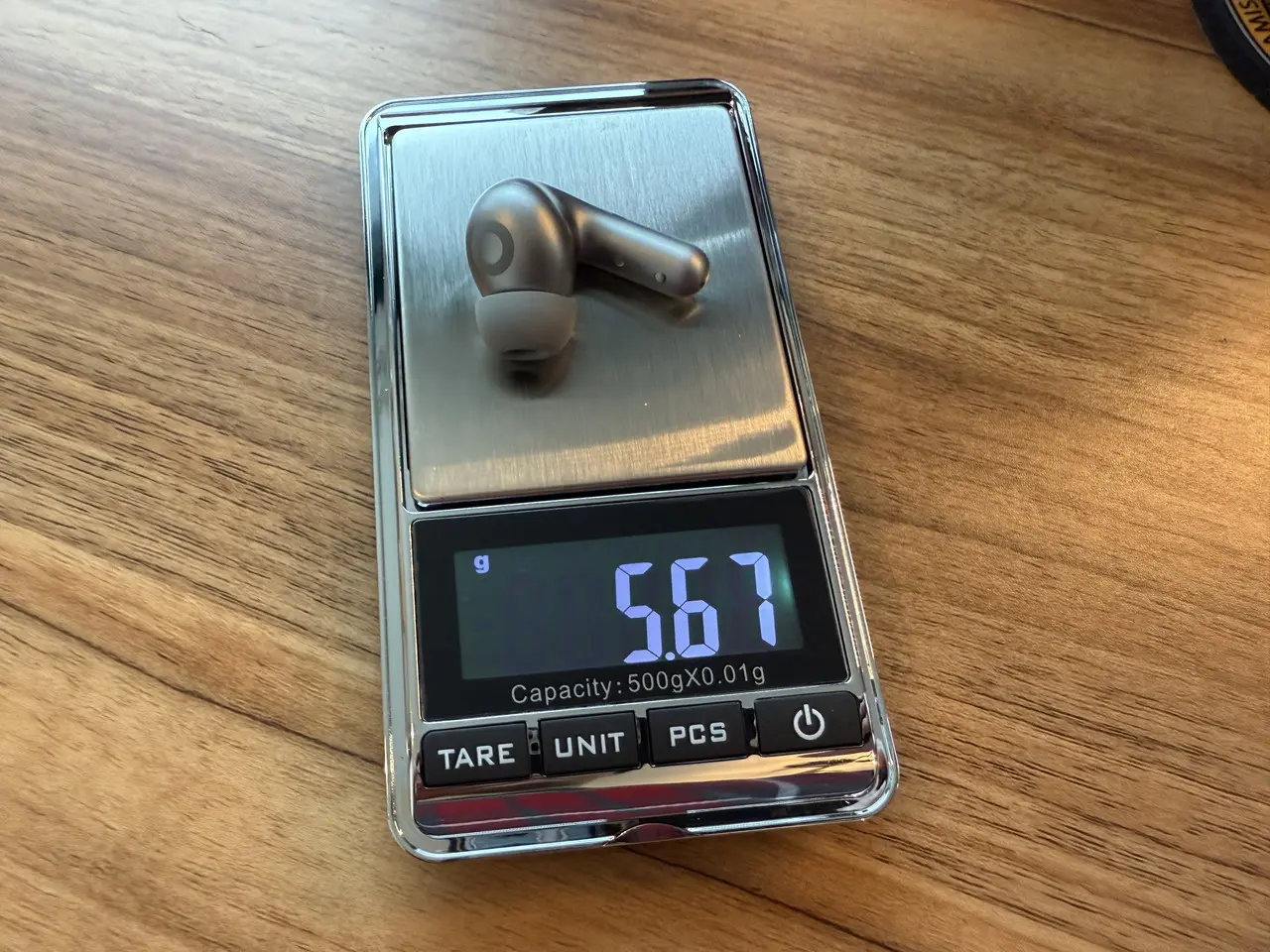 ▼イヤホン単体の重量は実測で約5.67g。