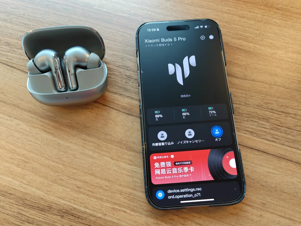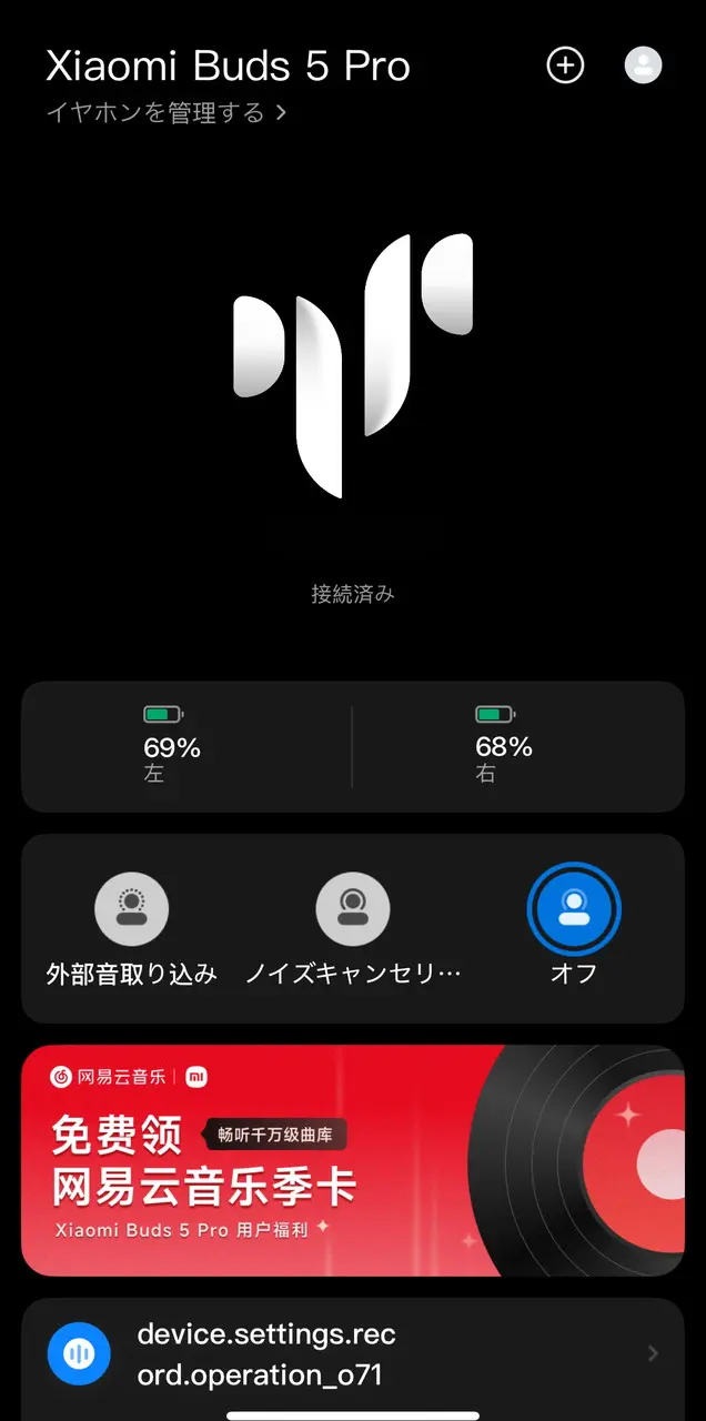 イヤホン起動中にアプリを開くと、"Xiaomi Buds 5 Pro" を追加できる。