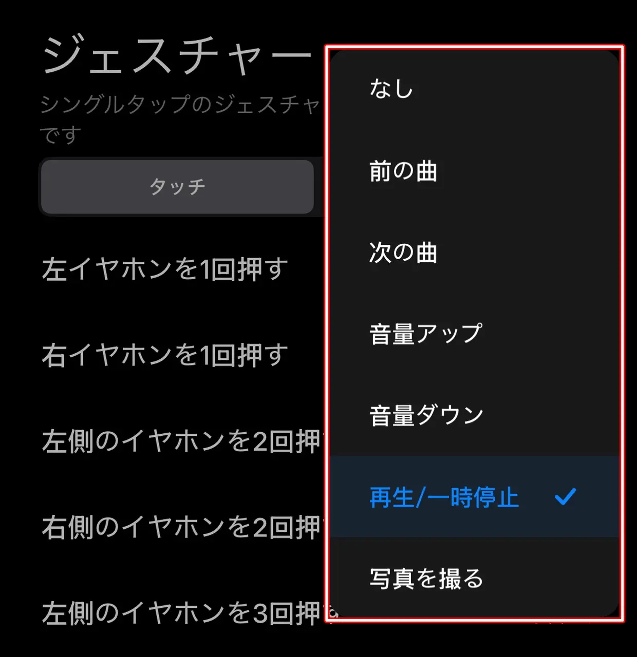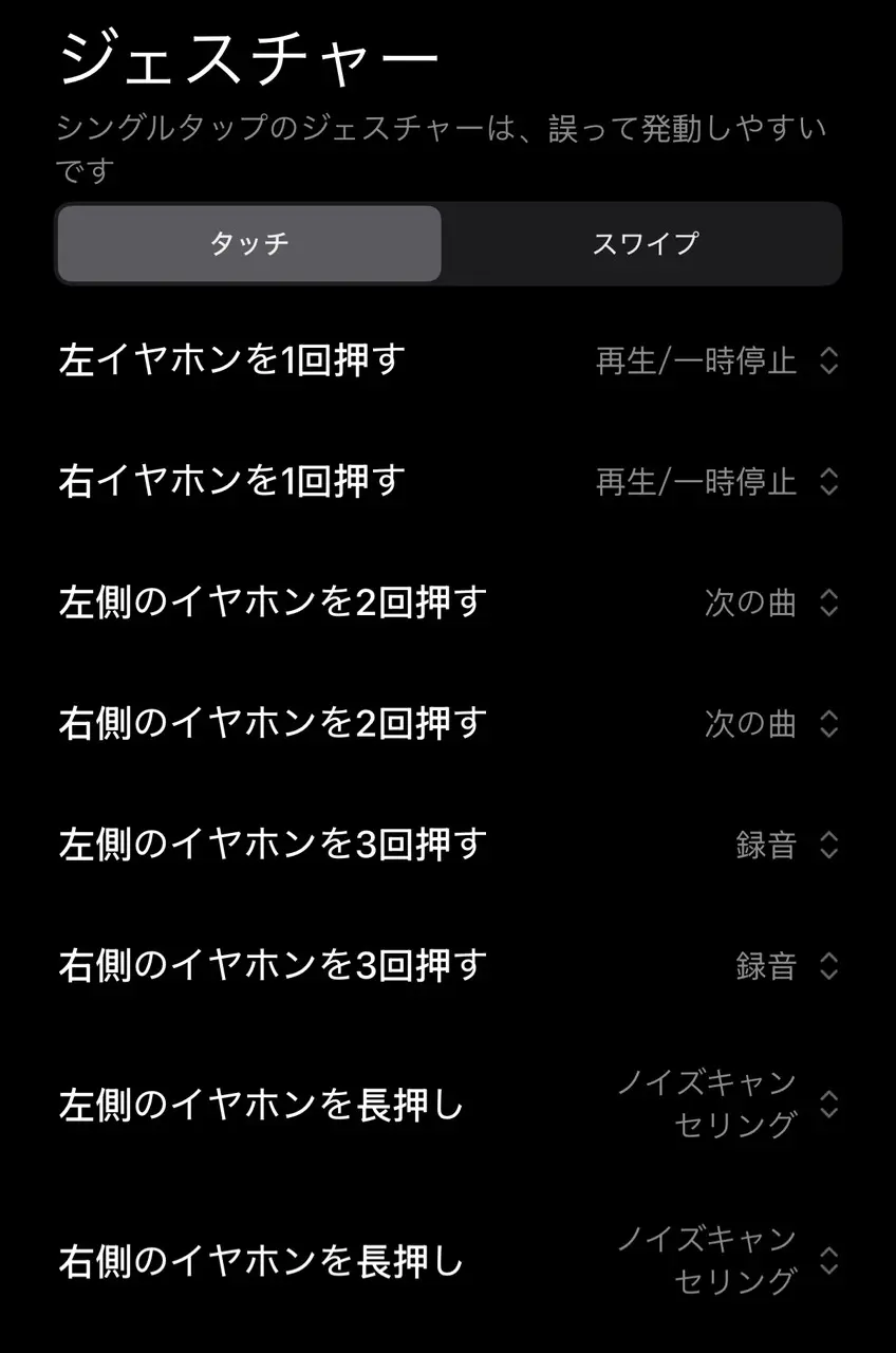 ユーザーによってはイヤホンに搭載されたタッチパネルを誤って触れてしまい、誤操作を起こしてしまい、ストレスを感じることがあるかもしれない。そのような場合を考慮して、タッチ機能を無効(なし)に設定することも可能だ。