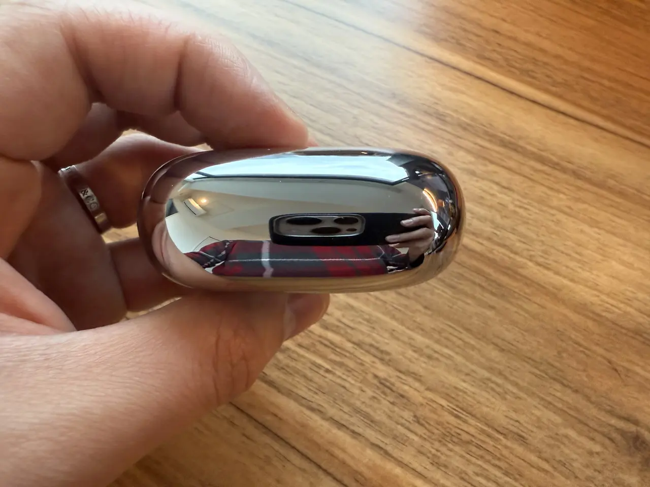 ▼気を付けないと紛失し兼ねないほど小さい。鈍い光沢が見られ、デザイン的にも質感的にも高級感がある。