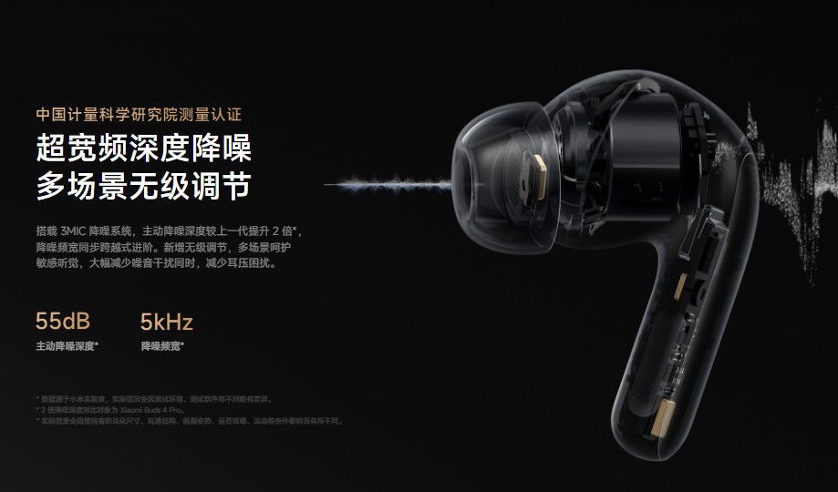 ▼前世代モデル(Xiaomi Buds 4 Pro)と比べて2倍ものノイズキャンセリング深度を実現。