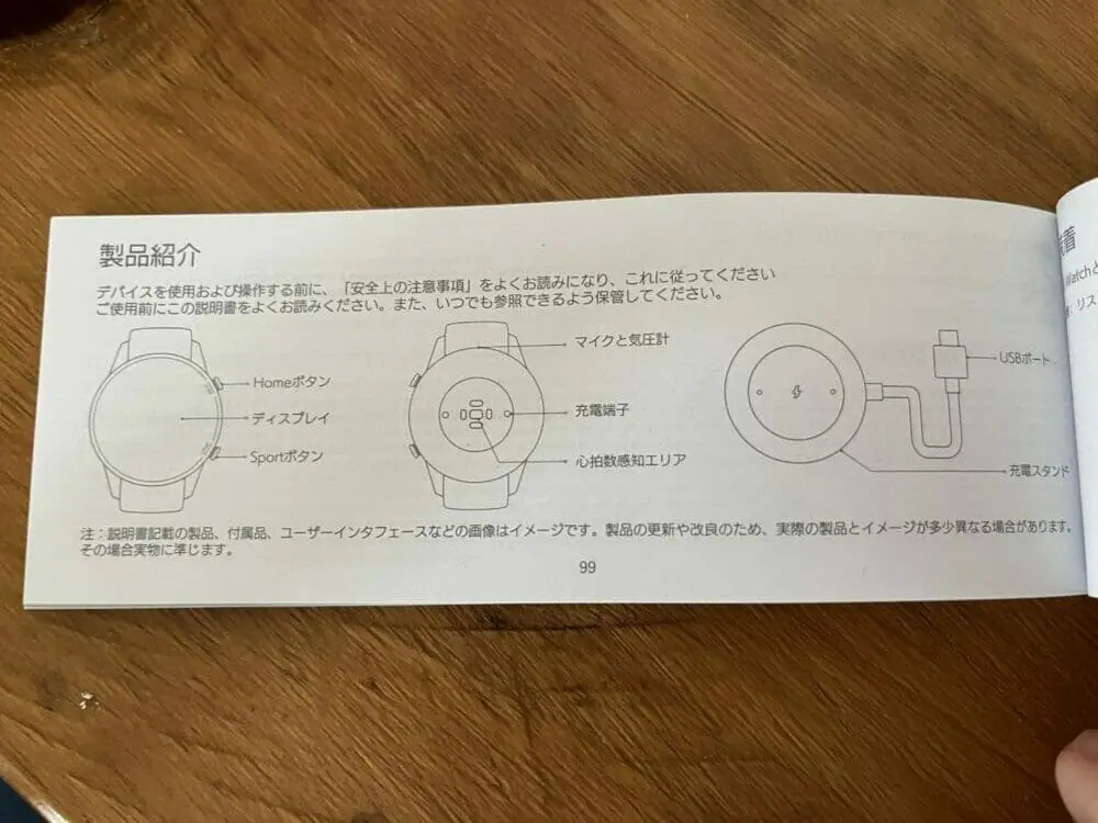 また、ライバルのHUAWEI社製スマートウォッチの特長である急速充電対応では無いため、充電には2時間程度の時間はかかります。