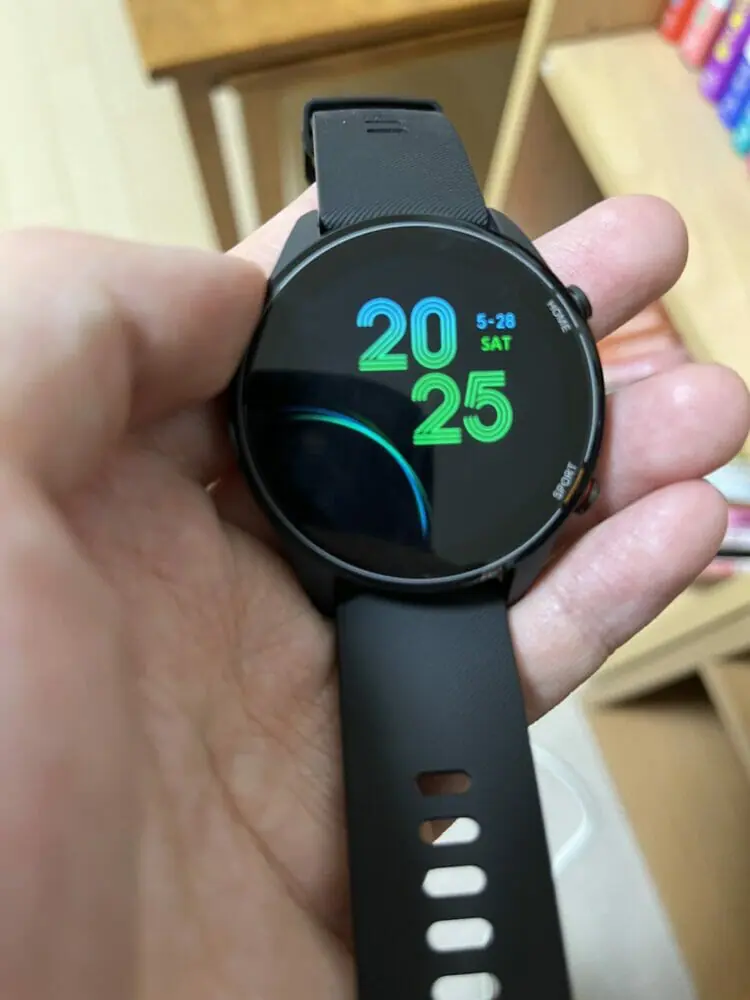 ローエンドスマートウォッチは4角形のデザインが多い中、こちらは腕時計寄りの円形のデザインで美しいディスプレイ表示も相まりファッション性も高いです。
